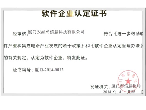软件企业认定证书
