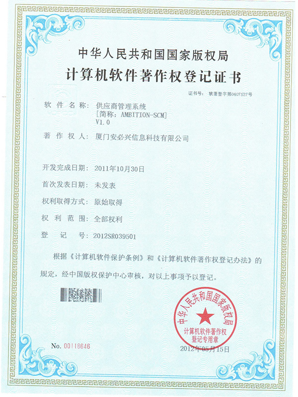 供应商管理系统著作权-