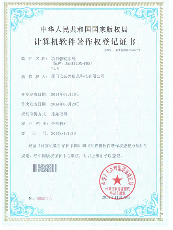 项目管理系统著作权-登记证书