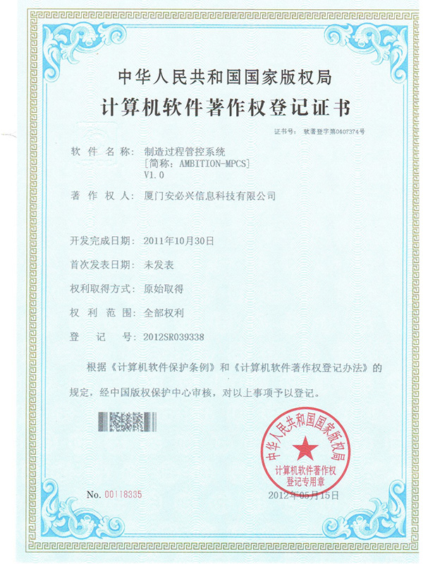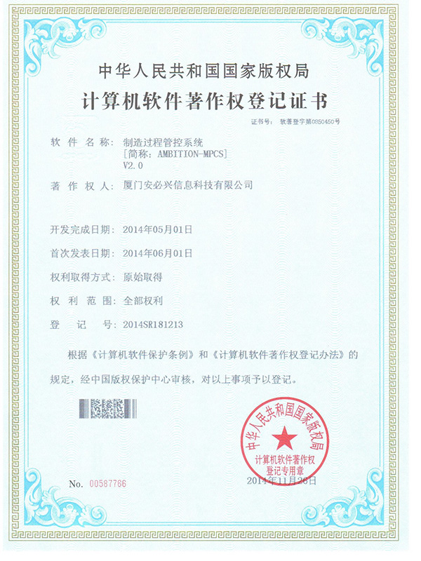 制造过程管控系统著作权-登记证书V2