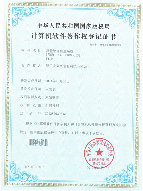 质量管理信息系统著作权-