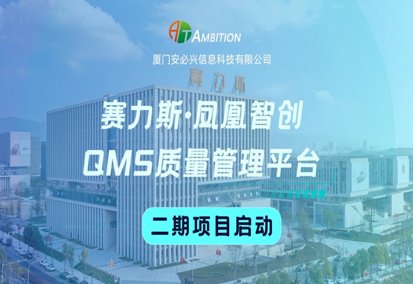 赛力斯凤凰智创QMS质量管理系统一期项目于2025年7月成功上线运行。现携手厦门安必兴启动QMS质量管理系统二期项目!