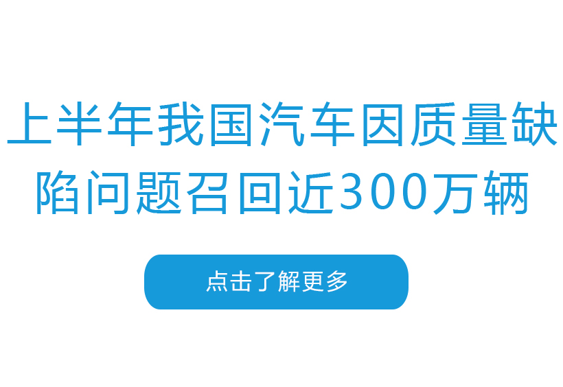 上半年我国汽车因质量缺陷问题召回近300万辆