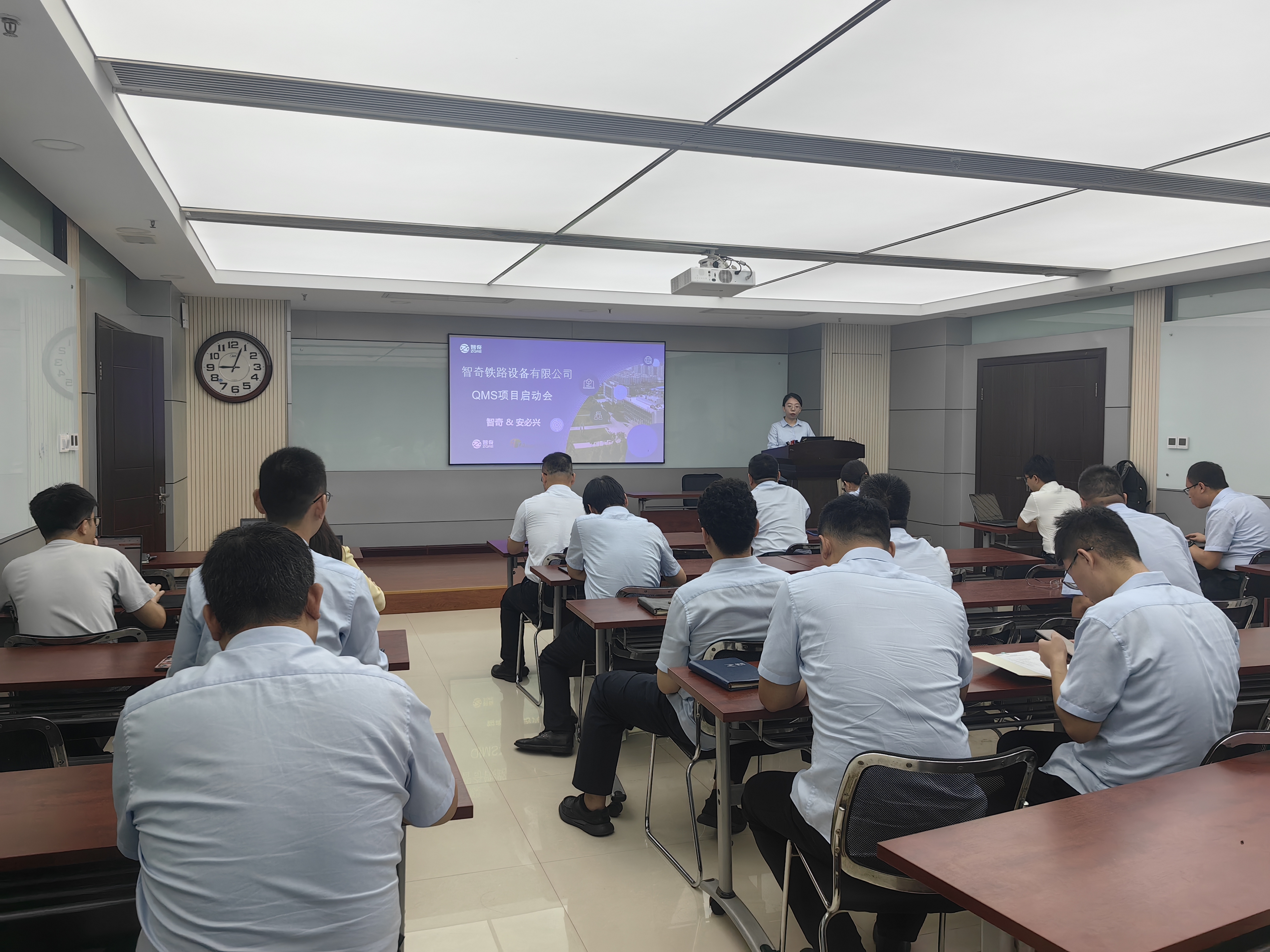 厦门安必兴项目顾问老师详细介绍了此次项目的背景、目标和实施方案。他指出,通过安必兴QMS系统的实施,智奇铁路将能够构建起一个全流程规范化、可视化、数字化的质量管理信息化平台。顾问老师强调,该平台将实现主要质量管理业务流程的数字化应用,有效提升生产质量跨部门的协作效率,并建立起完善的标准化管理和决策体系。他详细介绍了项目的实施步骤,包括需求调研、方案设计、系统构建、测试和上线等关键阶段。并表示项目团队将严格把控进度,确保项目按时完成。