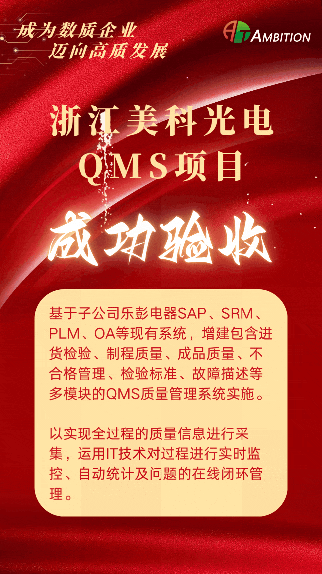 验收是结束,也是美科光电质量业务数字化管理新的开端。安必兴荣幸作为美科光电质量管理数字化升级发展道路上的同行者。