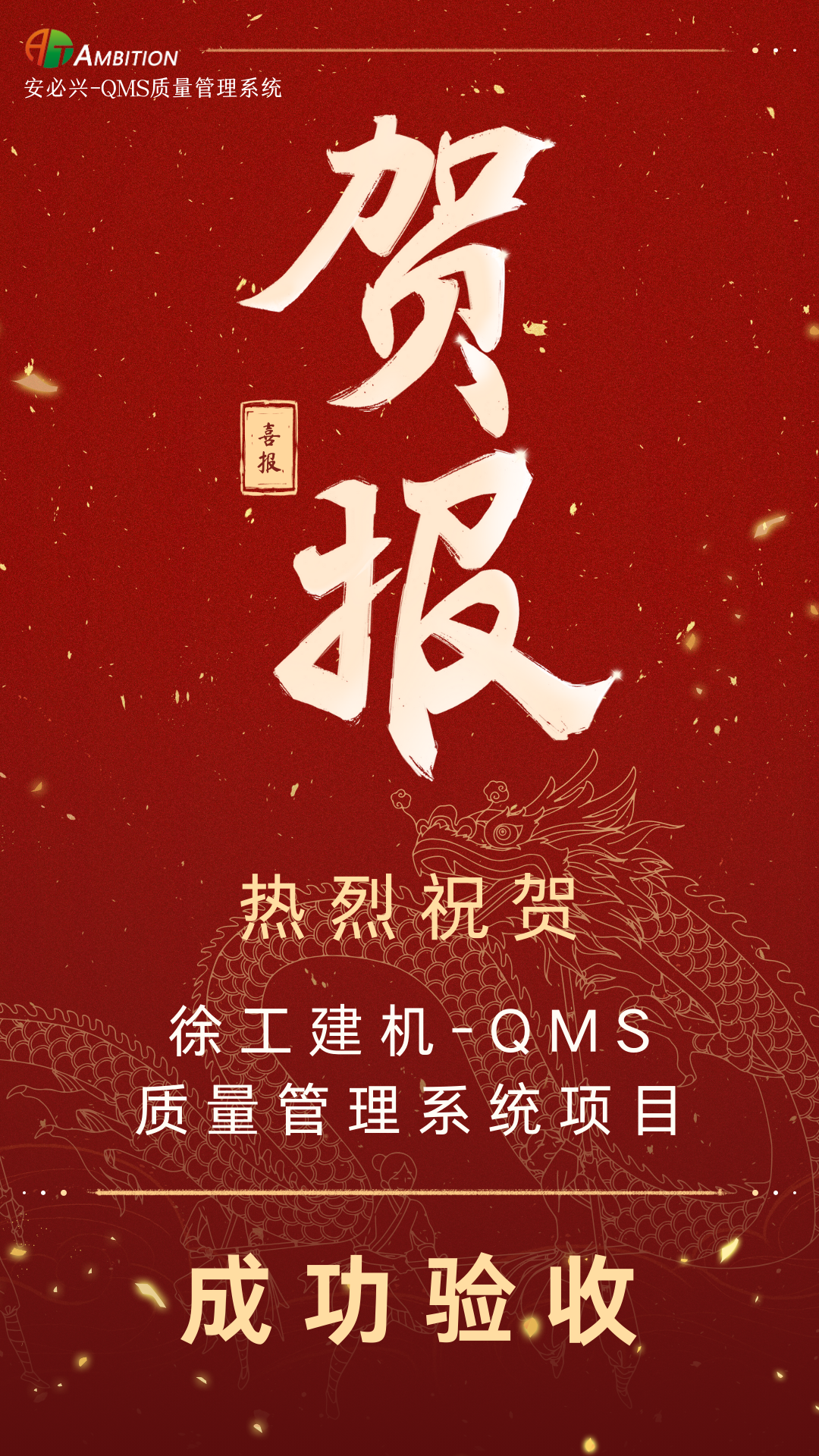 徐工建机QMS质量管理系统项目一阶段已于2024年5月完成验收。徐工集团与安必兴陆续开展多次QMS质量管理系统项目合作,包括徐工挖机、徐工机械、徐工施维英、徐工铲运和近日二阶段实施系统模块顺利完成终验收的徐工建机。