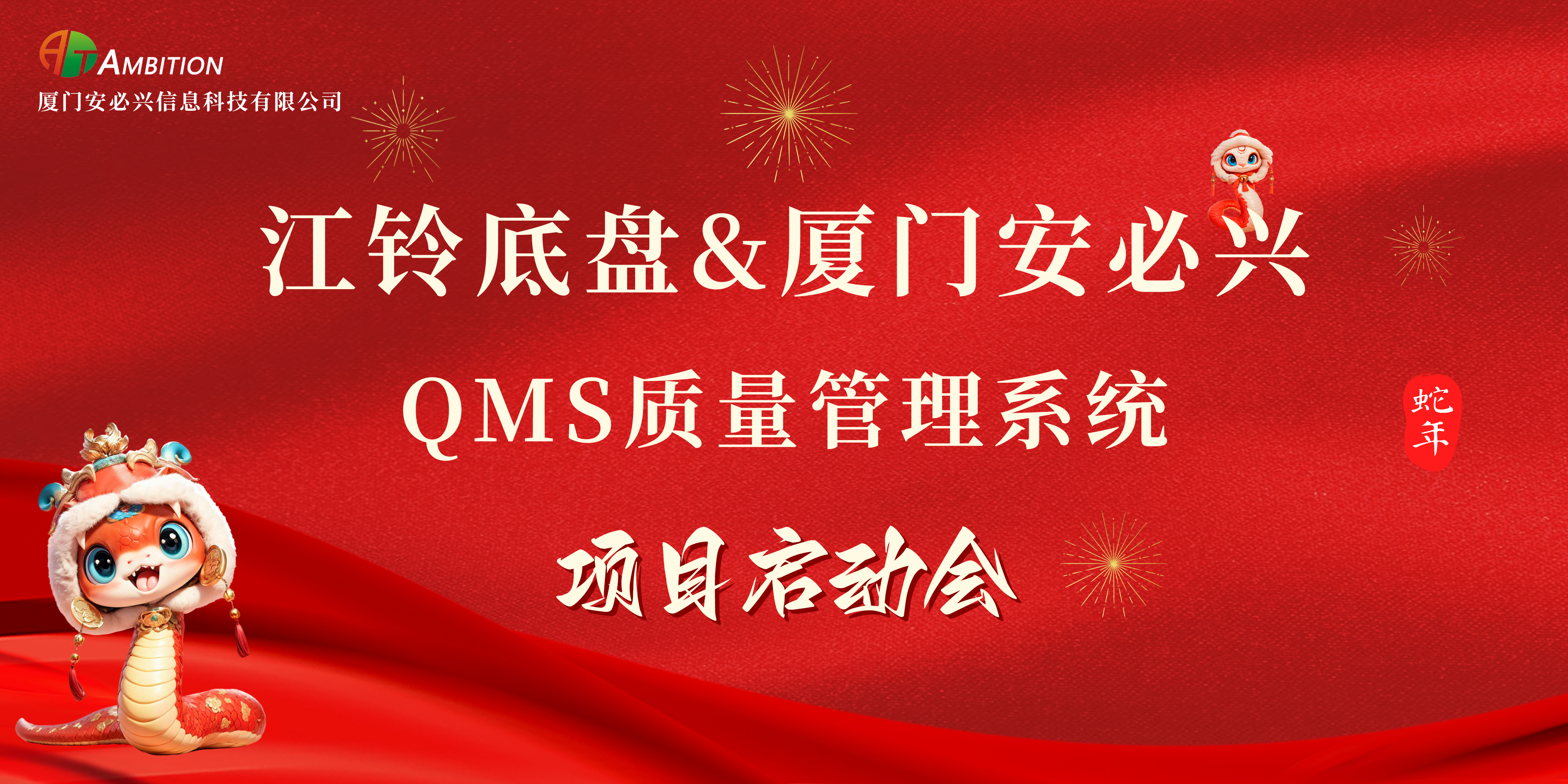 2025年5月7日,江铃底盘&厦门安必兴QMS质量管理系统项目正式启动!抢抓数字化升级的黄金时机,全面部署提质降本增效战略,为企业高质量发展注入新动力。江铃底盘领导、各部门负责人及厦门安必兴领导人、项目组成员均参加了此次启动会。