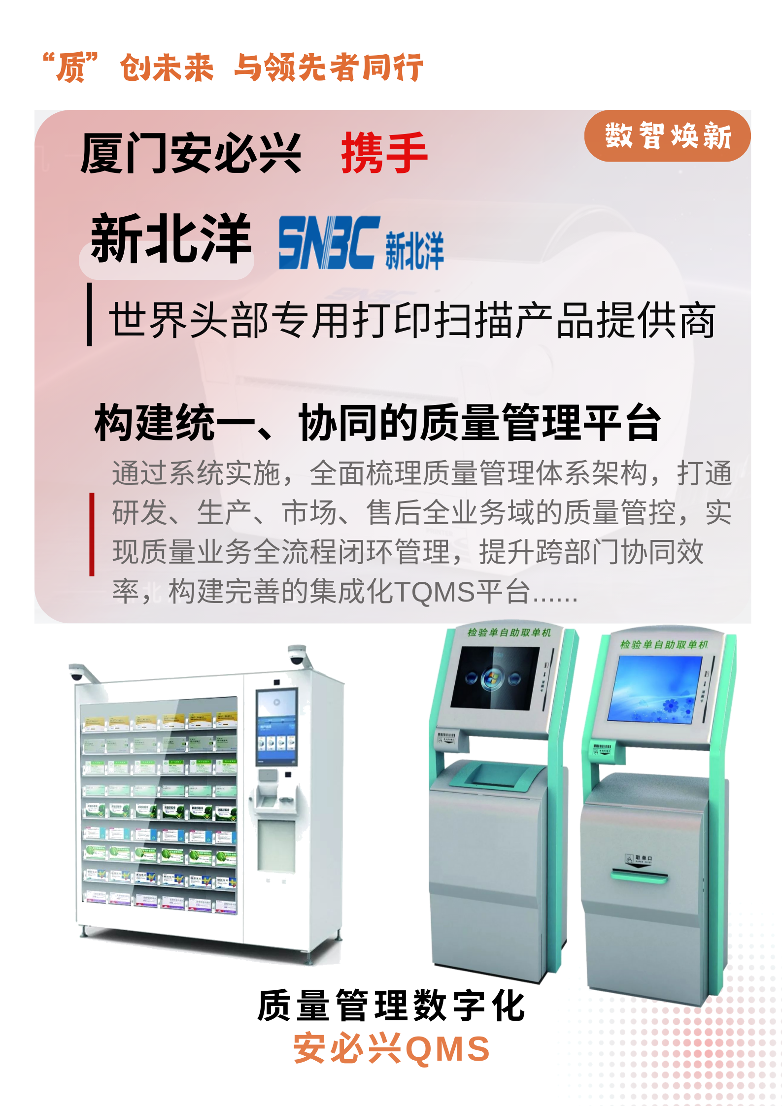 厦门安必兴深耕制造型企业质量管理解决方案领域十四年,凭借在装备制造业(如特变电工、西电开关、太重、海装风电、中船重工等)积累的深厚经验,再次迎来重量级合作伙伴——世界头部专用打印扫描产品提供商新北洋。