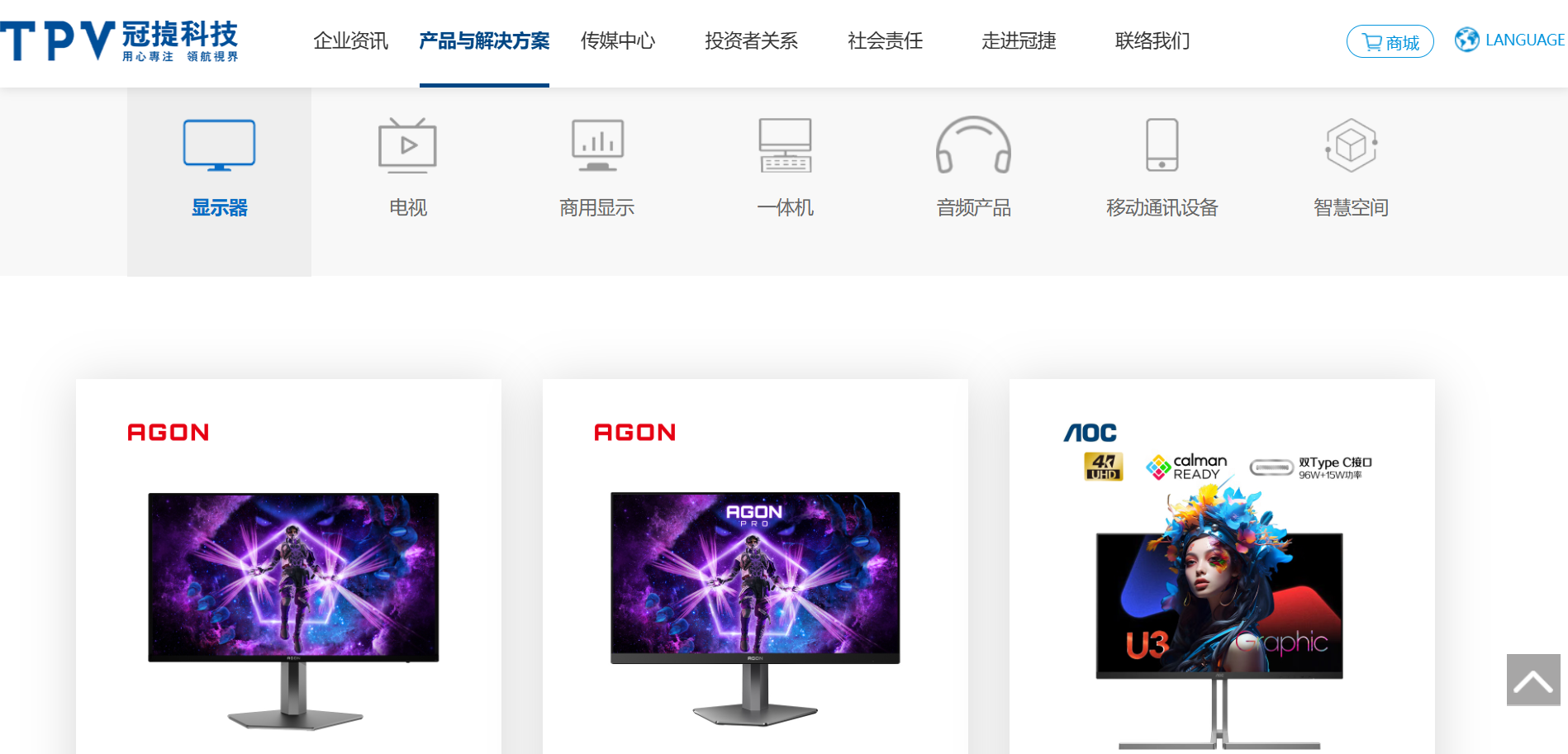 冠捷科技作为全球知名的智能显示终端制造商,掌握从面板模组、显示驱动到整机设计与系统集成的关键技术。在三十余年持续创新所形成的“显示技术一体化”及智能硬件、软件系统等核心技术基础上,冠捷科技以智能化、数字化技术推动显示产品的智慧化与场景融合,助力多行业实现视觉体验与运营效率的提升,已成为全球电竞、商用显示、智能零售、医疗影像等行业重要的显示解决方案与智能制造服务提供商。