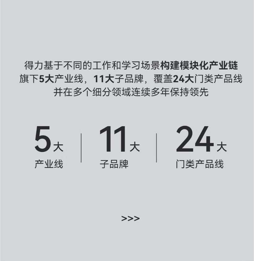 得力集团作为一家全球化文创科技产业集团及中国文具行业的领军企业,始终致力于为多元工作场景提供整体解决方案。其业务范围已从传统文具逐步扩展至办公设备、数码打印、儿童益智、精品工具、智能办公及办公家具等多个领域,构建起涵盖硬件产品与系统软件服务的完整产业生态。