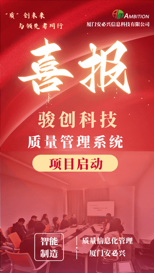 在此背景下,2025年12月,骏创科技正式携手在汽车及高端制造行业拥有深厚积淀的厦门安必兴,共同启动#QMS质量管理系统 数字化平台项目建设。该项目旨在以数字化赋能质量管理,实现从“事后检验”到“预防控制”的范式转变,为公司的可持续增长与全球化竞争构筑坚实的数据驱动型质量壁垒。