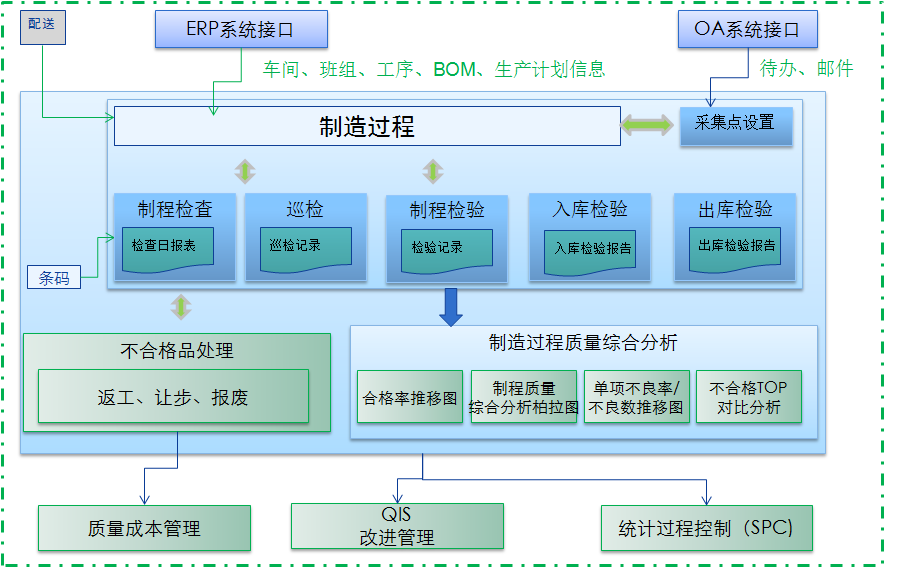 通过与ERP系统及条码系统的集成及不良编码,实现生产过程不良的高效采集、在线统计分析、监控预警。为制造质量管控提供支撑。